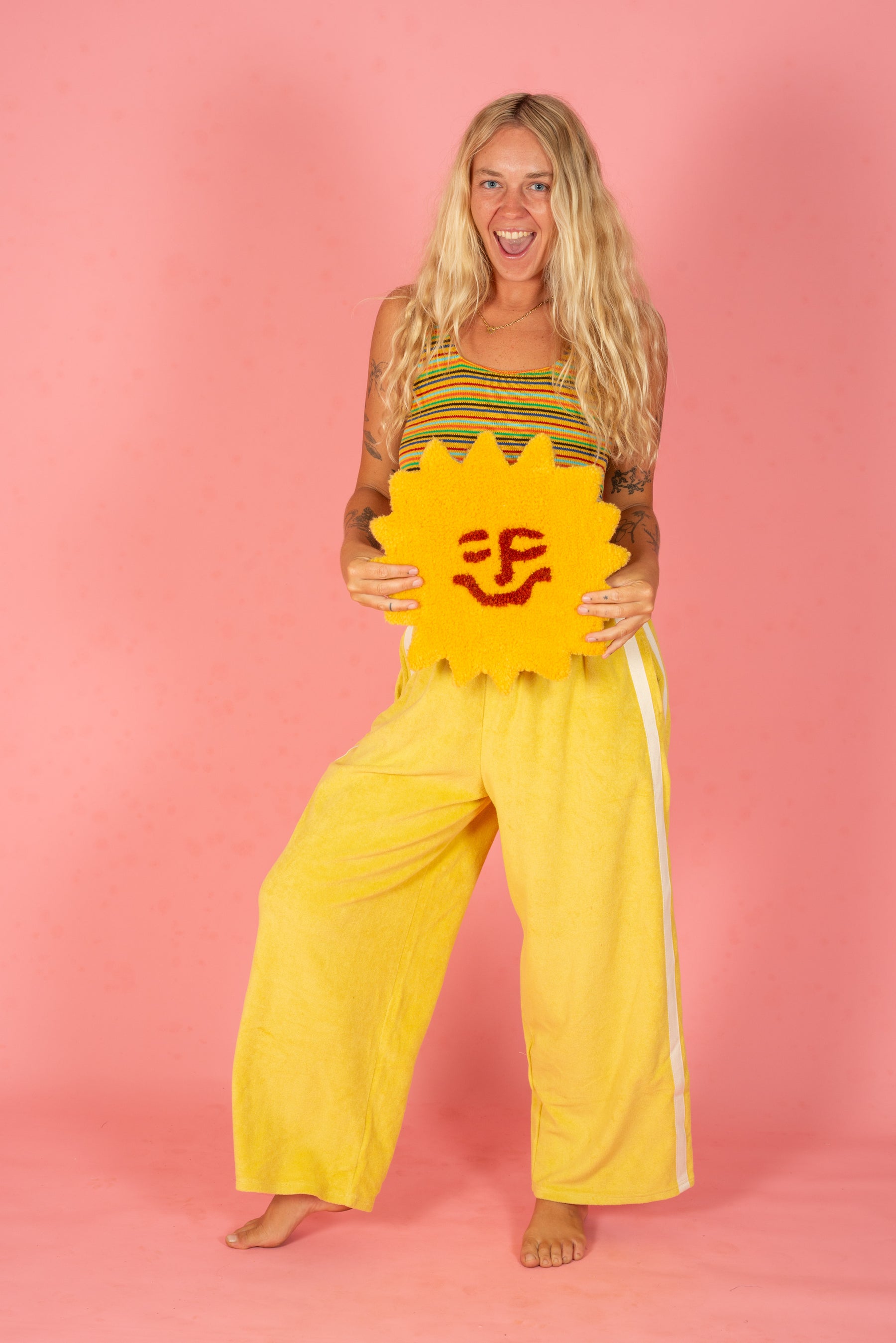 Made from soft terry towelling in our limited-edition colorways, these pants are designed for laid-back days and easygoing street style. With a relaxed, wide leg fit, a canvas drawstring waist, and a sporty 70s-inspired side stripe, they bring a touch of vintage cool to any outfit. Whether you're lounging, running errands, or styling them up for a casual day out, these are the go-to pants for comfort without compromise.