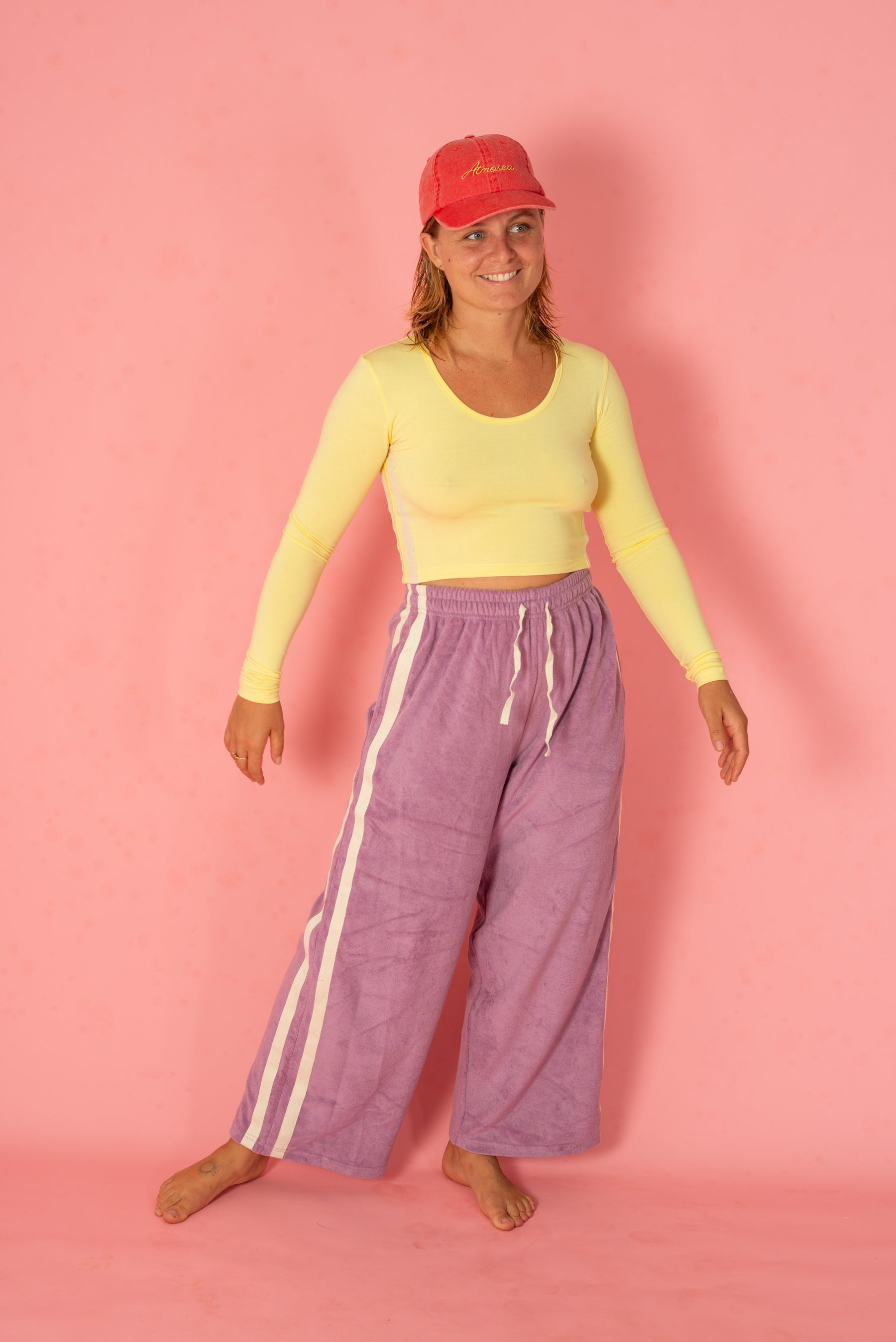 Made from soft terry towelling in our limited-edition colorways, these pants are designed for laid-back days and easygoing street style. With a relaxed, wide leg fit, a canvas drawstring waist, and a sporty 70s-inspired side stripe, they bring a touch of vintage cool to any outfit. Whether you're lounging, running errands, or styling them up for a casual day out, these are the go-to pants for comfort without compromise.