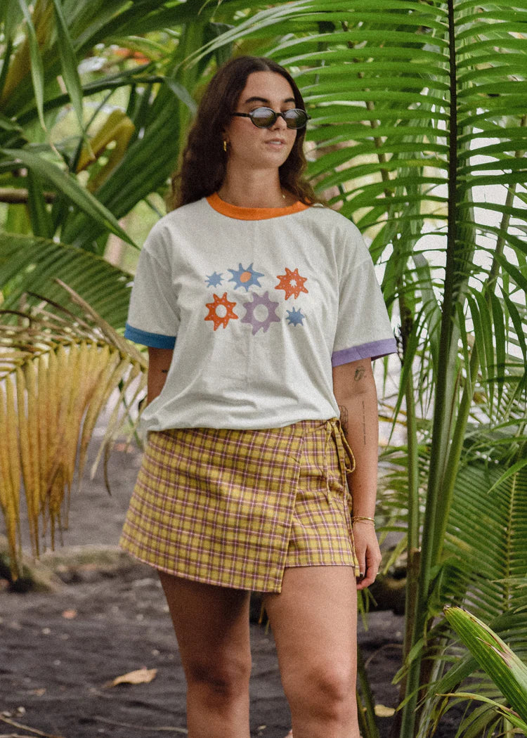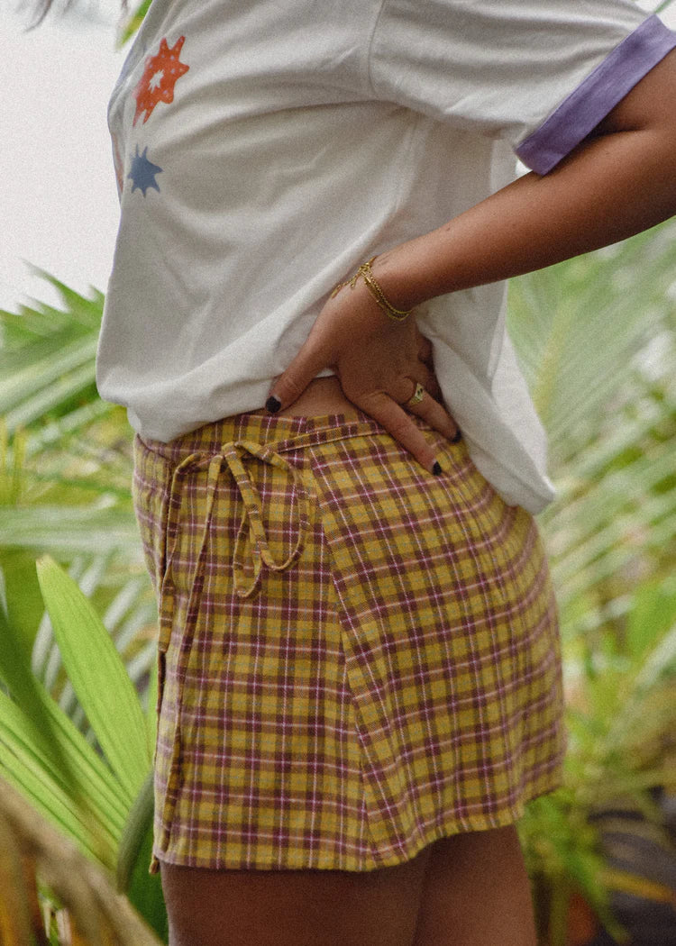 A sweet nod to 90s nostalgia, this flannel wrap skirt is soft, versatile, and endlessly easy to wear. With a flattering tie-up waist and a short hemline, she’s ready for bike rides, beach hangs, or whatever the day brings. A new classic for your wardrobe rotation — comfy, cute, and just the right amount of throwback.