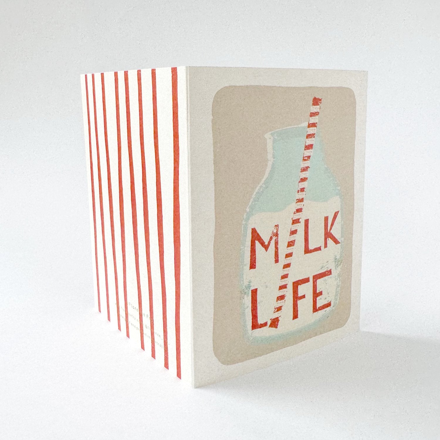 Our Milk Life card is size A6 and printed on a beautiful FSC approved paper. The card comes with a recycled Kraft envelope. Cards purchased via this online store are supplied with no protective sleeve