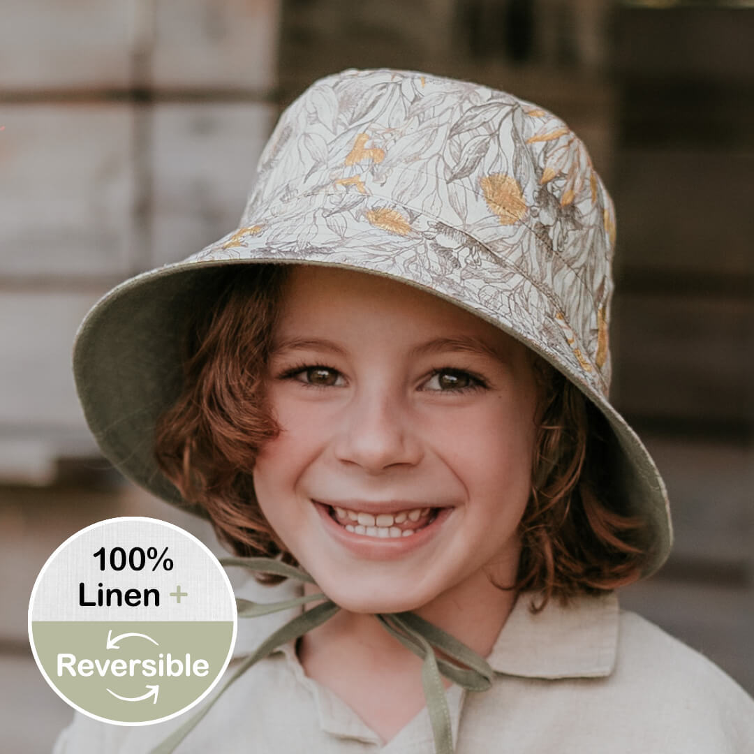 'Explorer' Kids Reversible Classic Bucket Hat - Mallee / Moss