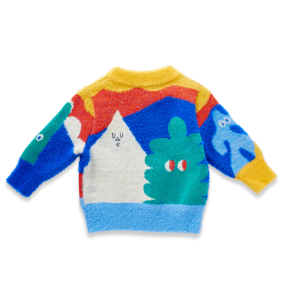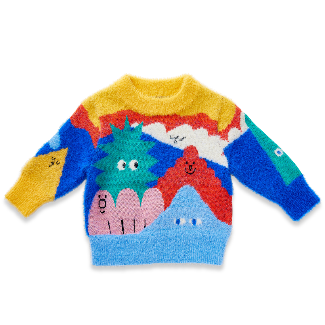 Features a crew neckline, subtle fluffy finish and picture knit design from our Mount Wiggly collection on both sides.