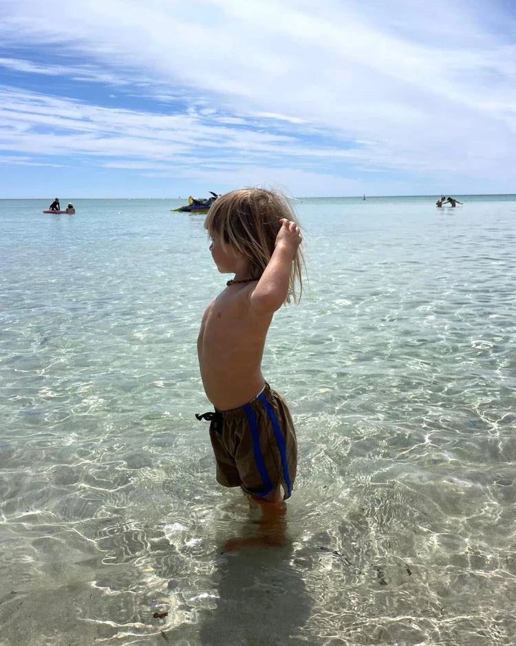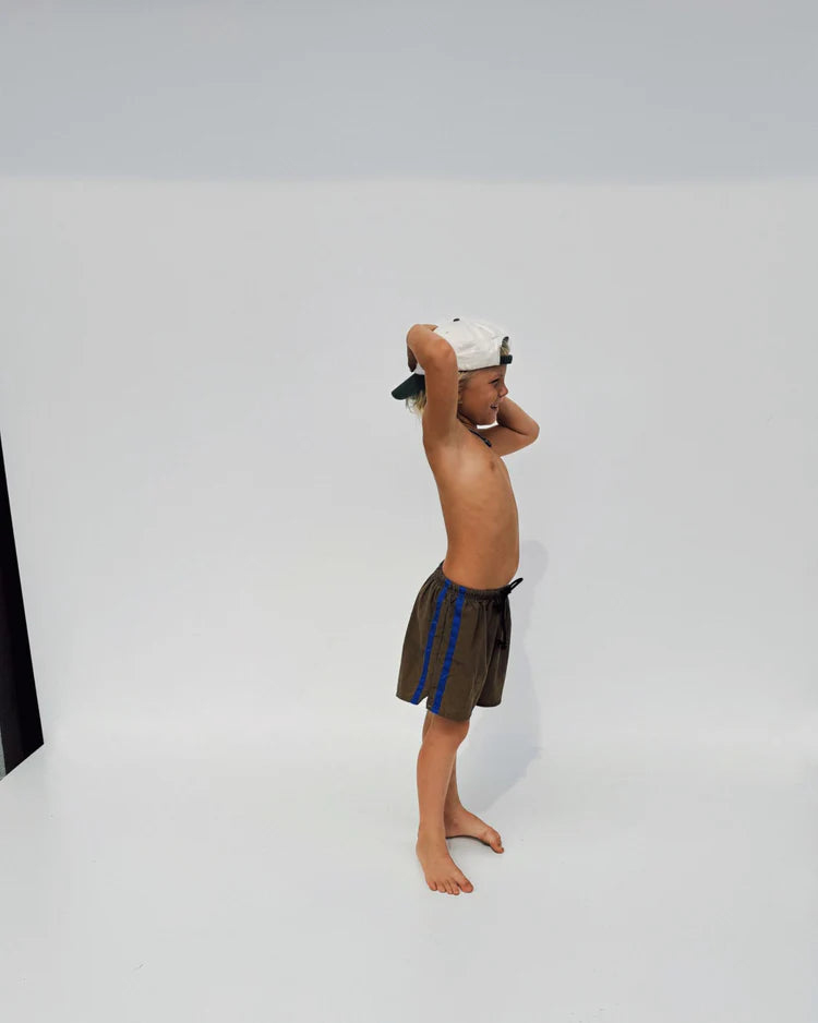a super lightweight swim short with our feature twin stripes down the side, a drawcord and soft elastic waist for the perfect fit