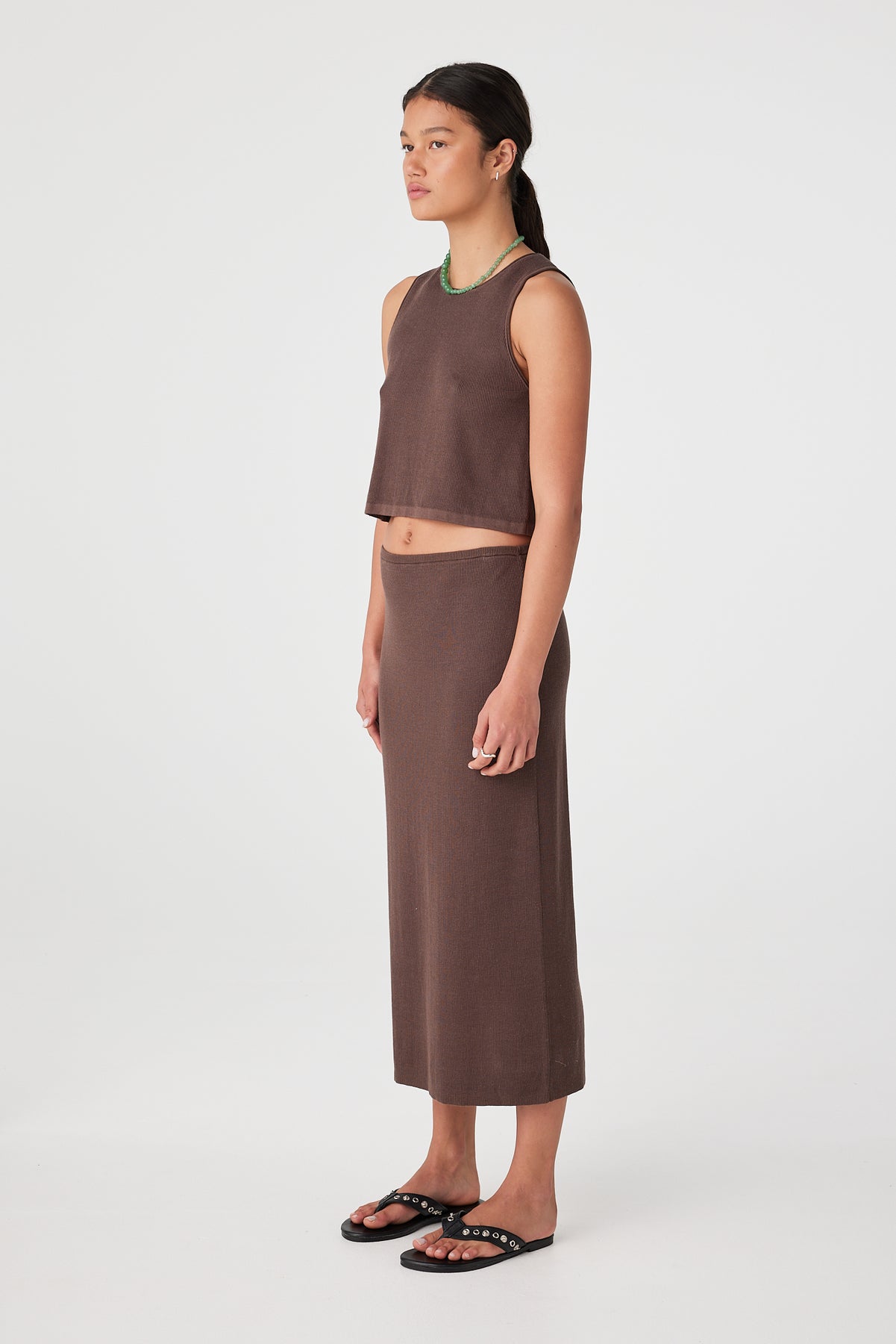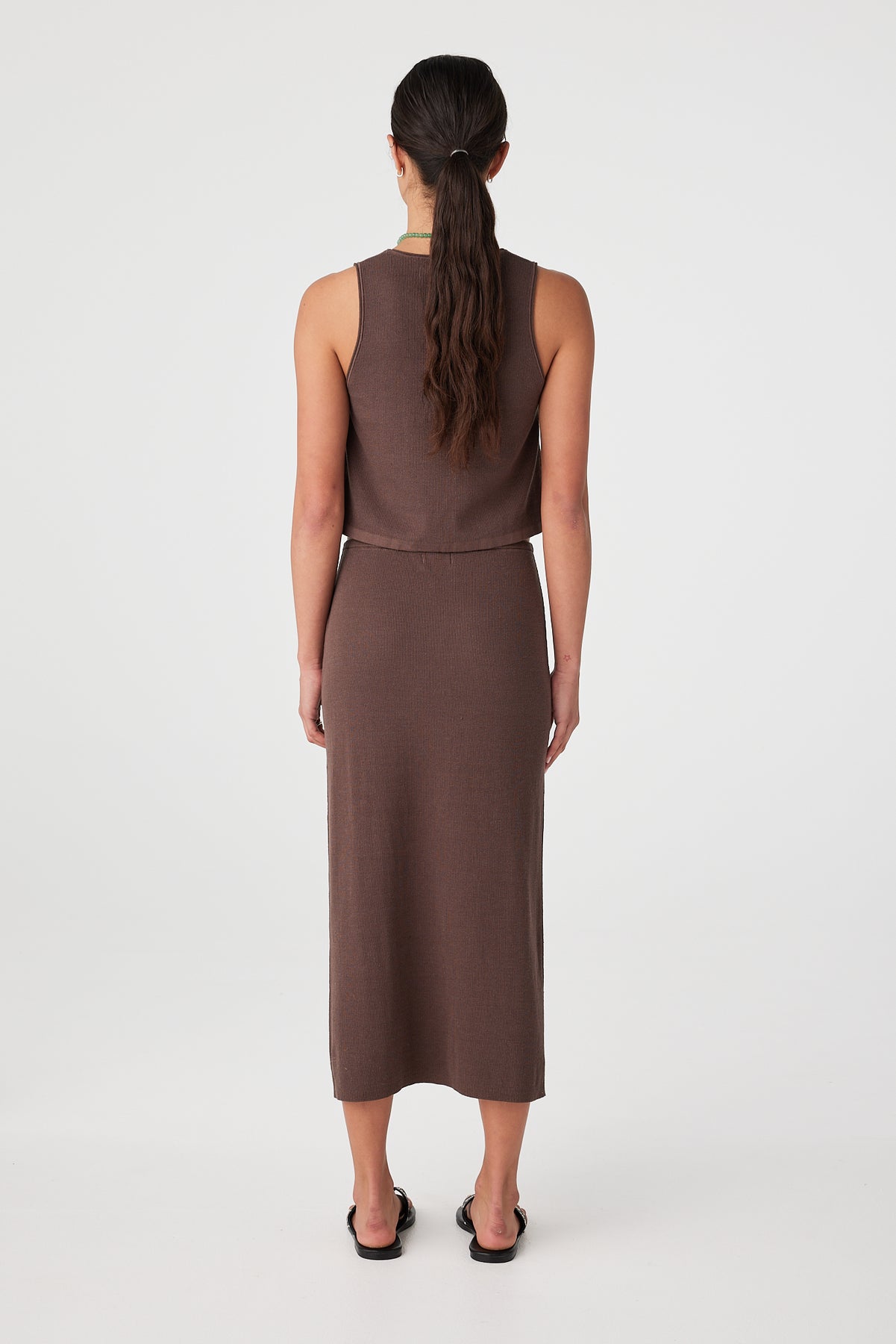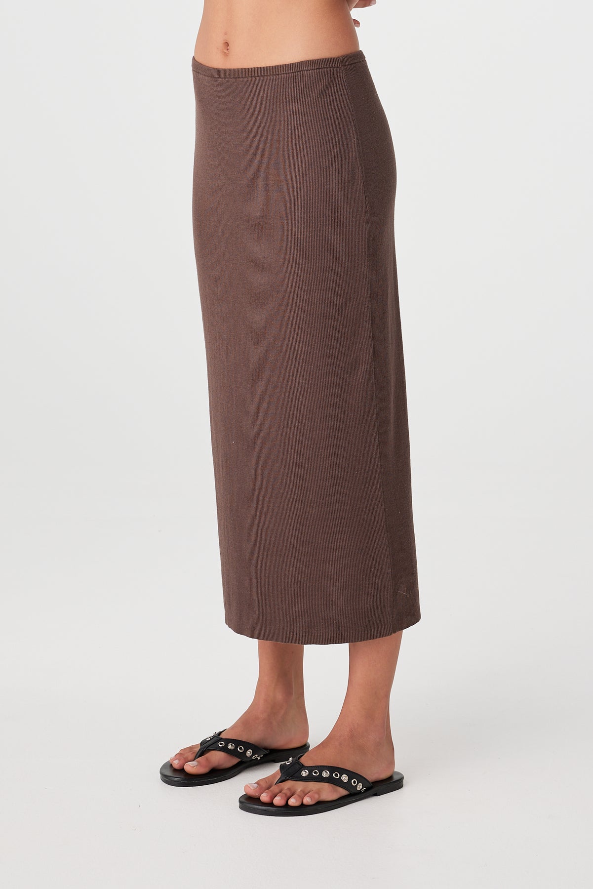 Soft rib knit longline skirt in espresso brown
