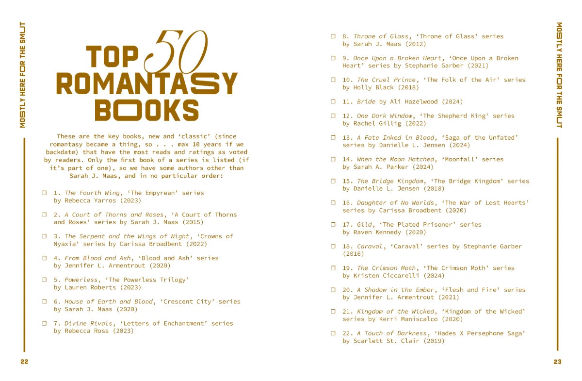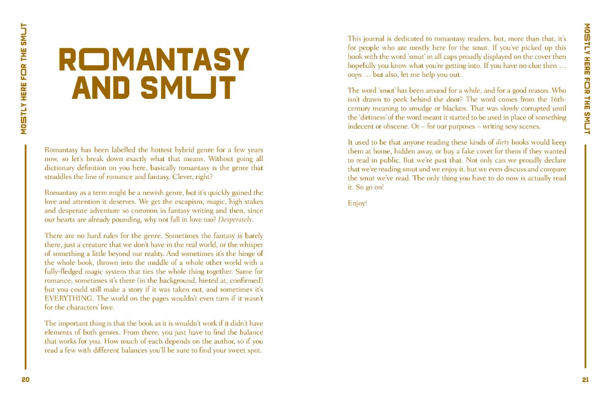 This reading journal was specifically made for the readers who love romance and want the extra drama the fantasy can bring, the readers who are Mostly Here for the Smut.