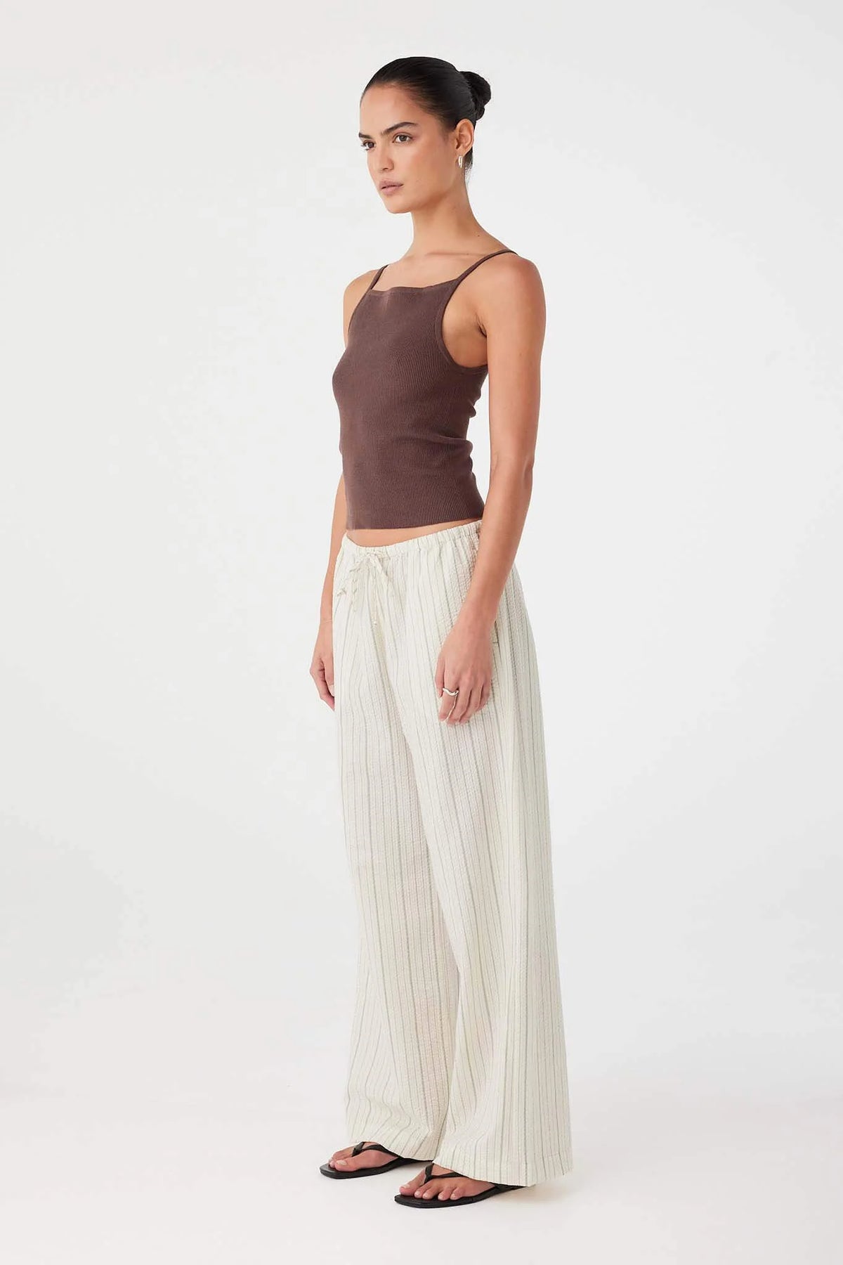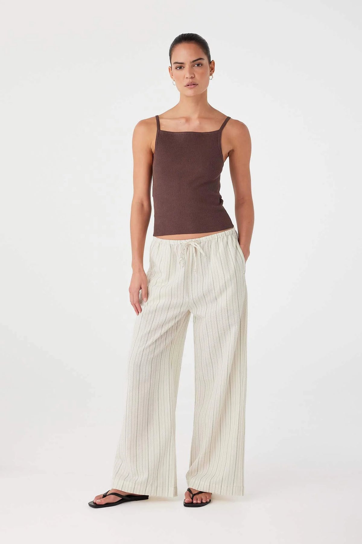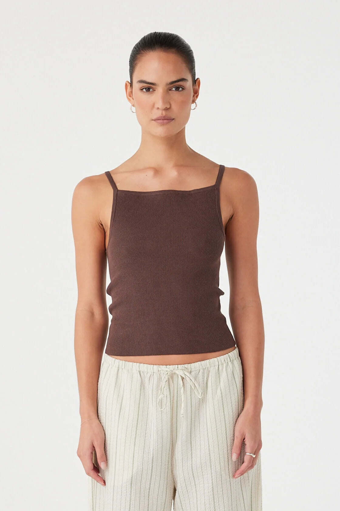 The Sienna Tank in Espresso is a fitted rib knit with a straight square neckline and thin straps for a clean, structured silhouette. Cut from a hemp–organic cotton blend, it offers natural breathability with a soft hand feel, designed for layering or worn alone through warmer days.