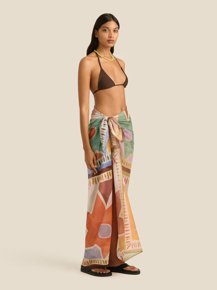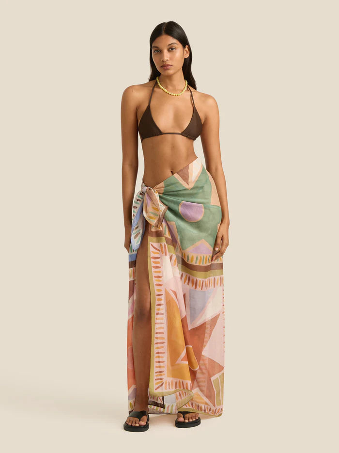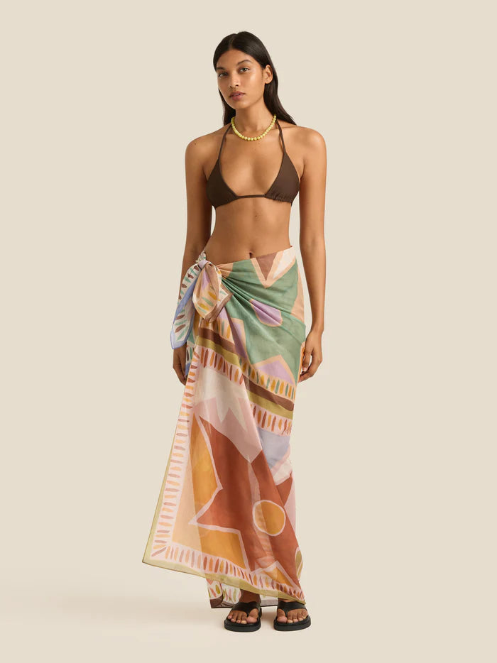 Where it all began. A perfect square of lightweight organic cotton, versatile for all your over-swim needs. Our signature piece—the Square Pareo can be tied as a mini or midi length beach cover-up, or folded into quarters and used for a myriad of purposes as a smaller square scarf.