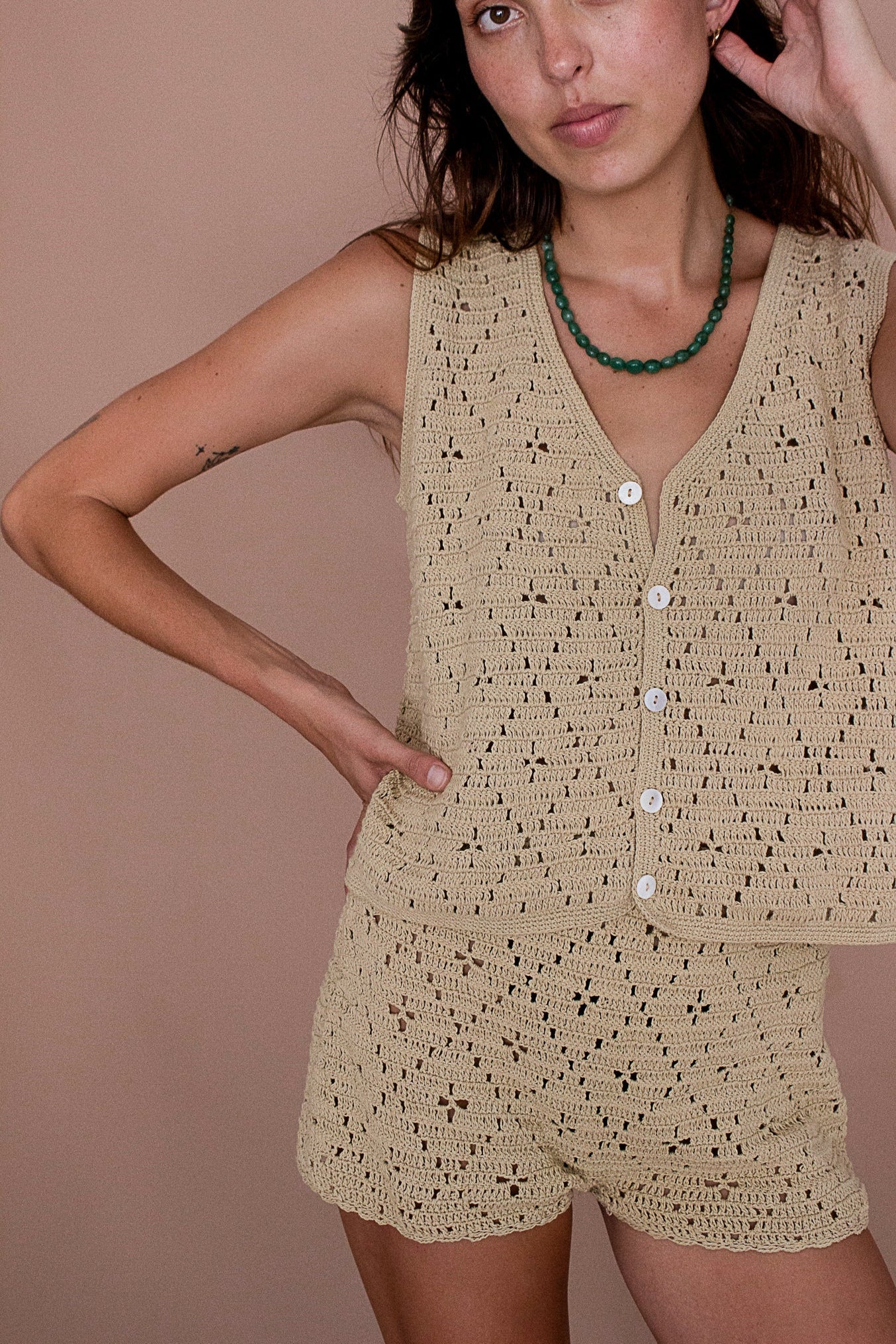 Margot Crochet Shorts - Sand