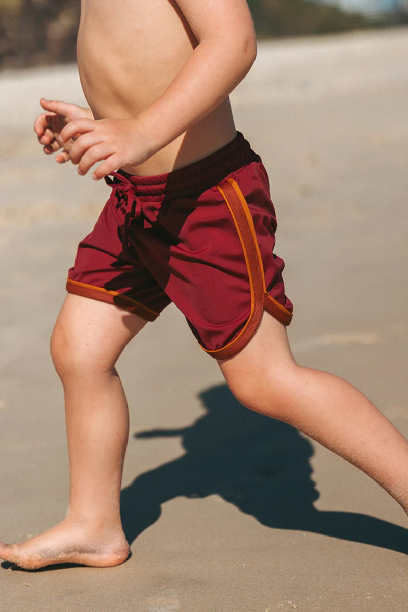 Designed for cool little beach kids, our boys’ retro swim shorts feature a classic scoop side cut inspired by old-school surf style. Lightweight and easy to wear, they’re perfect for swimming, beach days, and all-day play.