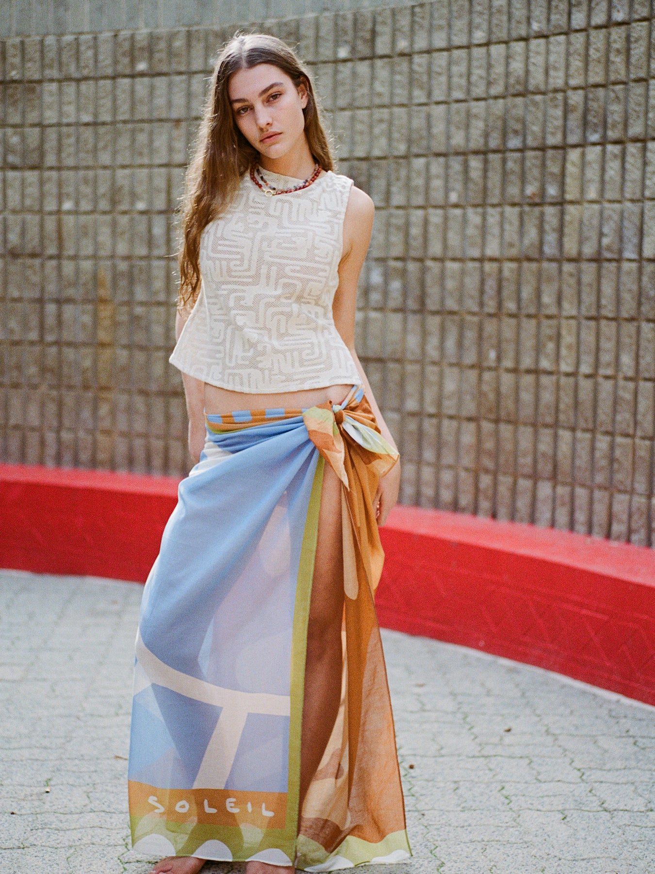Where it all began. The Square Pareo — our signature piece — is a perfect square of lightweight organic cotton, made with all your over-swim needs in mind. Versatile and effortless, it can be tied as a mini or midi-length beach cover-up, or folded into quarters and worn as a smaller square scarf.