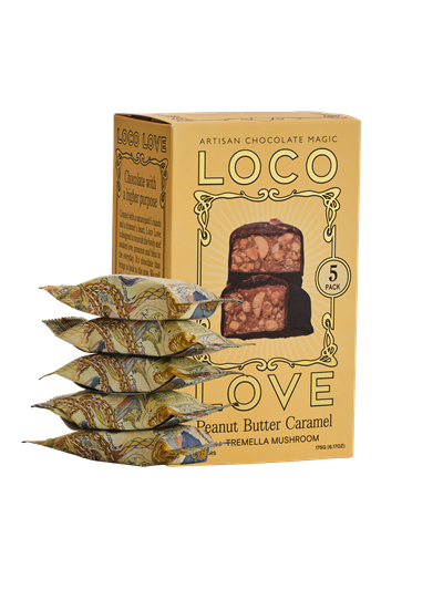 Prepare to be enraptured. It’s rich, it’s buttery, it’s salty and sweet. A luscious blend of our house-made crunchy peanut butter and our signature chewy caramel, spiked with youth-restoring medicinal mushroom, Tremella. In our world, you only live forever.