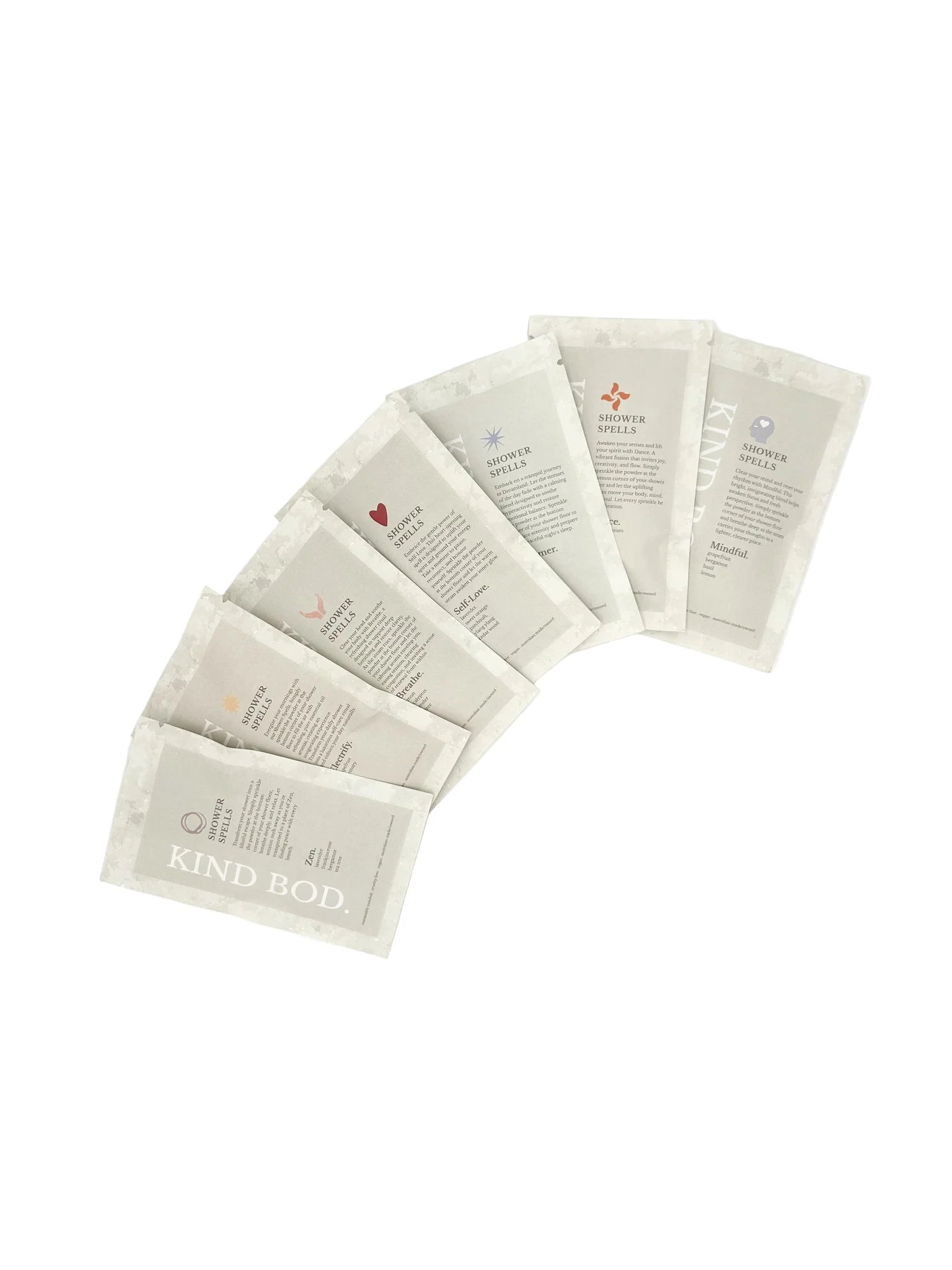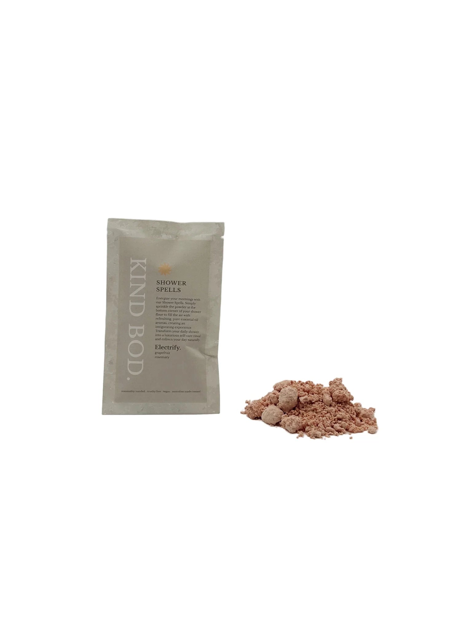 Pour the spell powder onto the shower floor, towards the edge, away from the direct stream of water. Wait 30 seconds for the fizzing to activate the aromas of pure essential oils