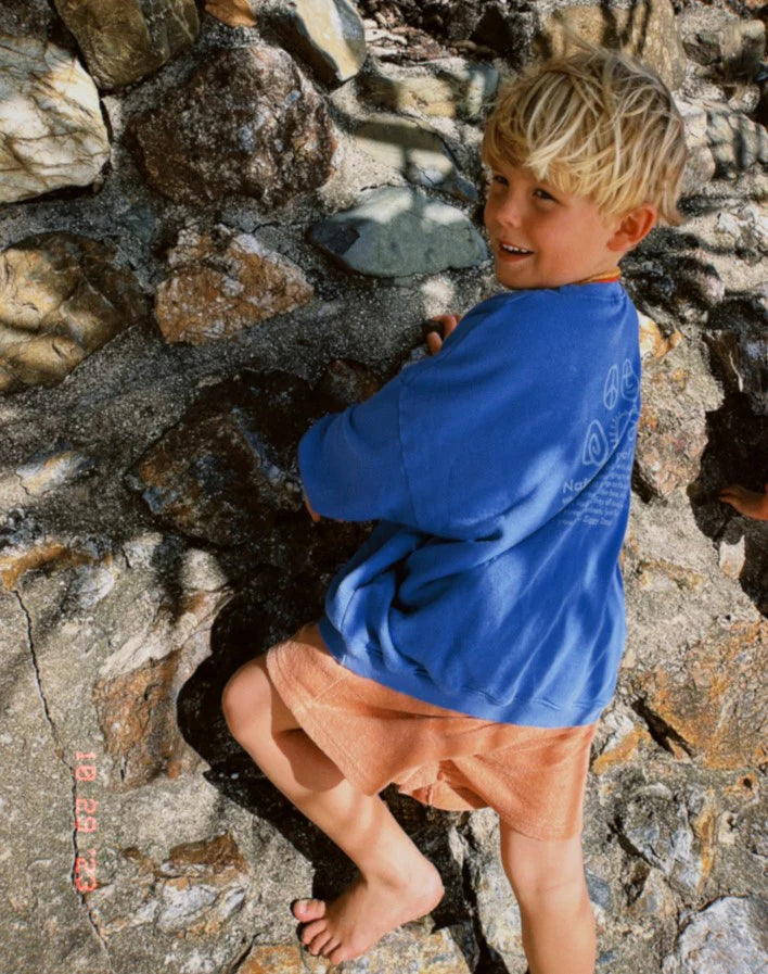 Our tiki shorts are designed with a relaxed fit—we recommend selecting the size closest to your child's age for the perfect fit.