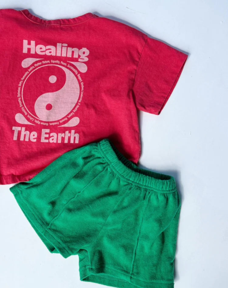 a comfortable, loose fitting short with a soft elastic waist. made from high quality 100% terry cotton.